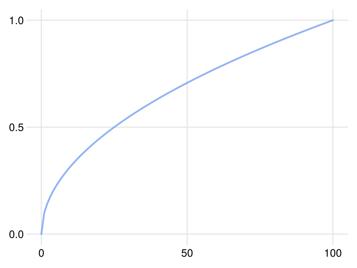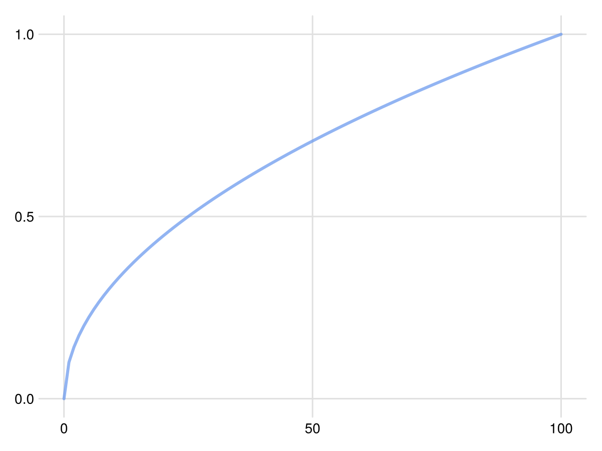 lines(0:0.01:1, sqrt; axis=(;xtickformat=percentageticks))