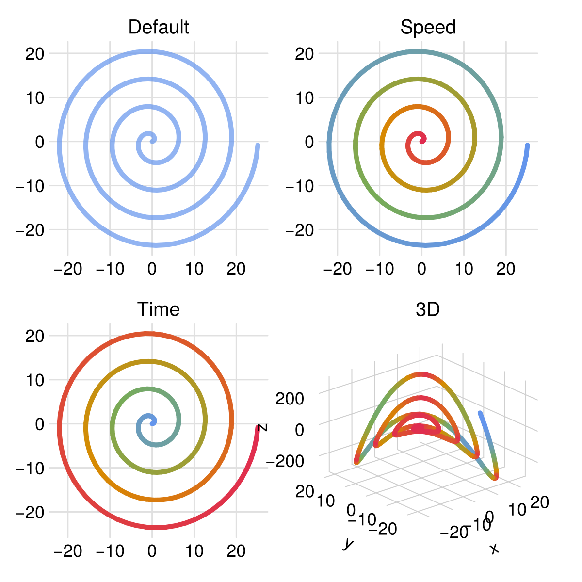 trajectory!(ax, x, y; color = :speed)